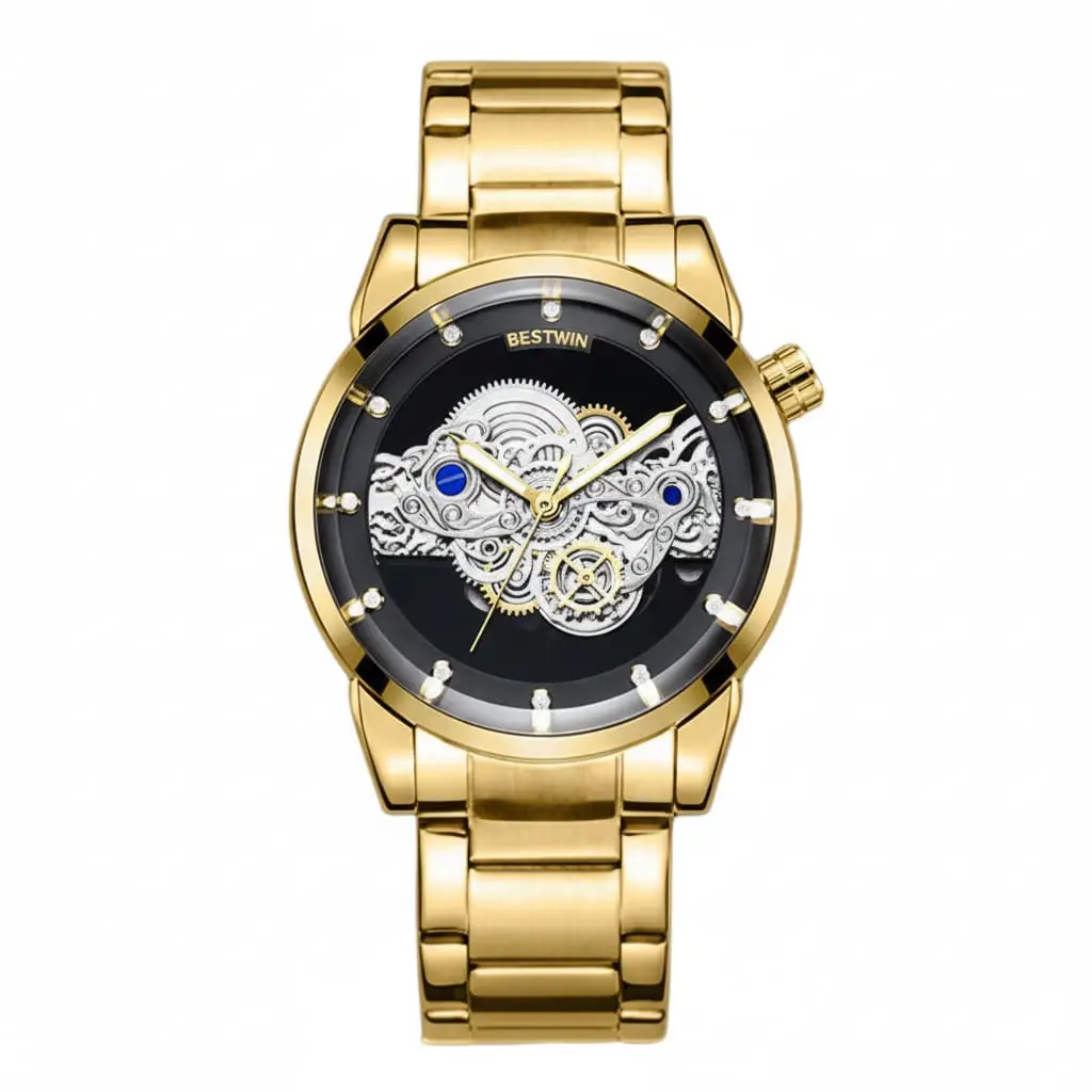 BESTWIN BW911 Mens Quartz Watch – Gold Black